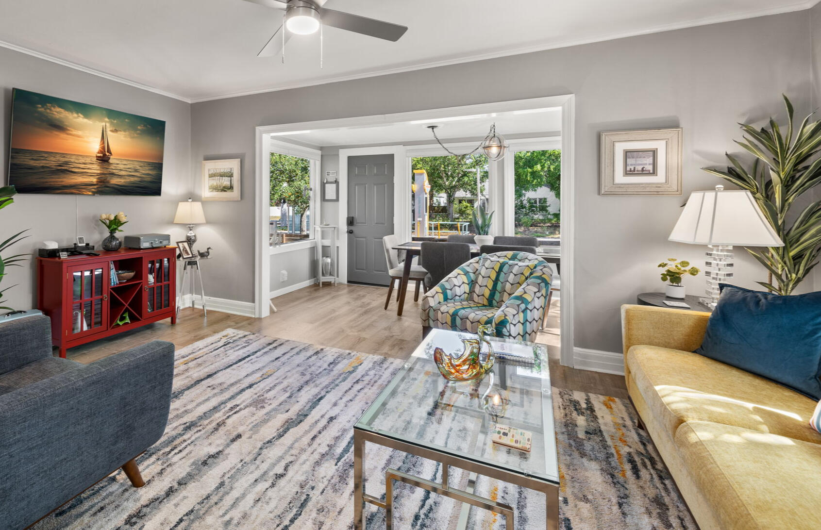 Bright, fully furnished 3BR/2BA home on a quiet block near downtown St. Pete. Walkable to Grand Central, minutes to Bayfront, Eckerd, and the beaches. All utilities, high-speed Wi-Fi, and lawn care included — move in with a suitcase. $3,800/mo, 6–12 month stays.